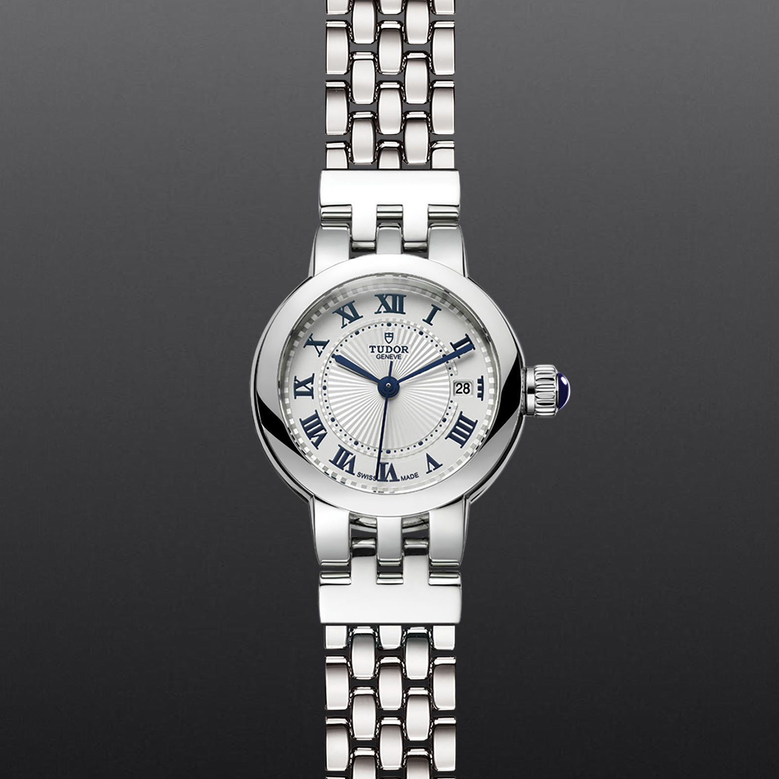 The Clair de Rose line, reimagined in a classic, refined and timeless spirit, uses the brand’ s historic aesthetic codes. The Clair de Rose collection is available exclusively in steel and in six configurations and three sizes, 26, 30 and 34 millimetres in diameter, it presents opaline dials with delicate decorations in relief, punctuated with blue lacquered Roman numerals or diamonds.