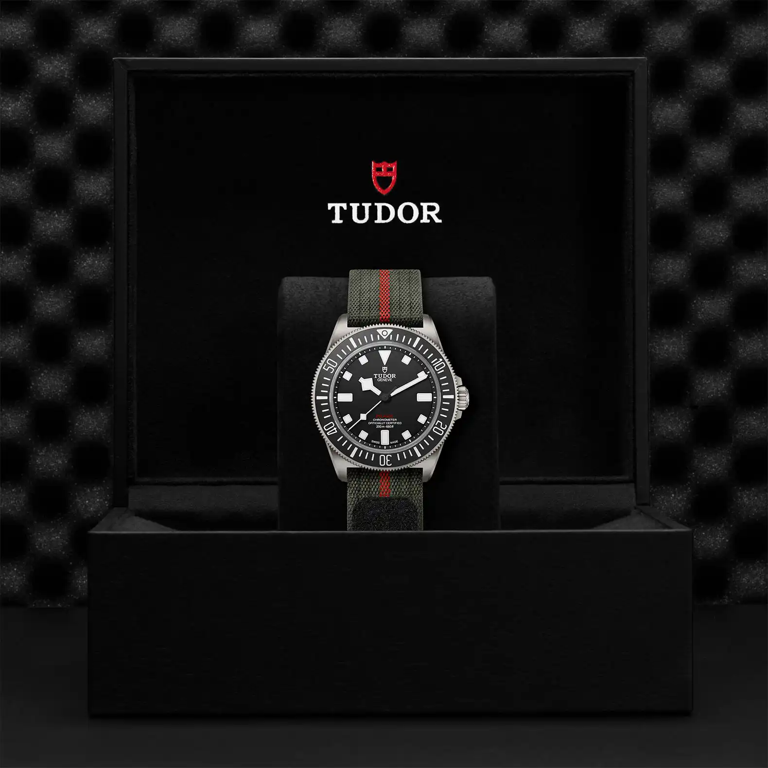 The Pelagos FXD model, where FXD refers to the extra robust fixed strap bars of the case, was developed in conjunction with the French Navy’s combat swimmers. Waterproof to 200m (660 ft), it was designed for underwater navigation and is optimized for professional use. Also in the range is a model that pays tribute to the decades of TUDOR watches on the wrists of US Navy divers. Complete with fixed strap bars, a titanium case, a high-performance Manufacture Calibre and a unidirectional elapsed-time rotating bezel, it comes as the ultimate modern “Milsub” (short for Military Submariner) of yesteryear. Visually in line with a late ’60s-era TUDOR Oyster Prince Submariner; it incorporates elements from the US military specifications for diving watches. In short, the FXD range is the product of TUDOR’s cooperation with two military organisations.