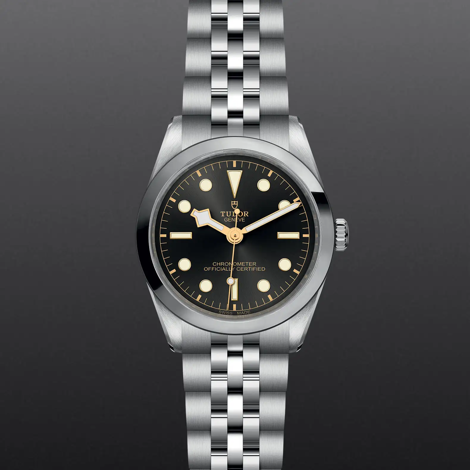 磨光及磨砂不锈钢表带,配帝舵表“T-fit”摺扣及保险扣