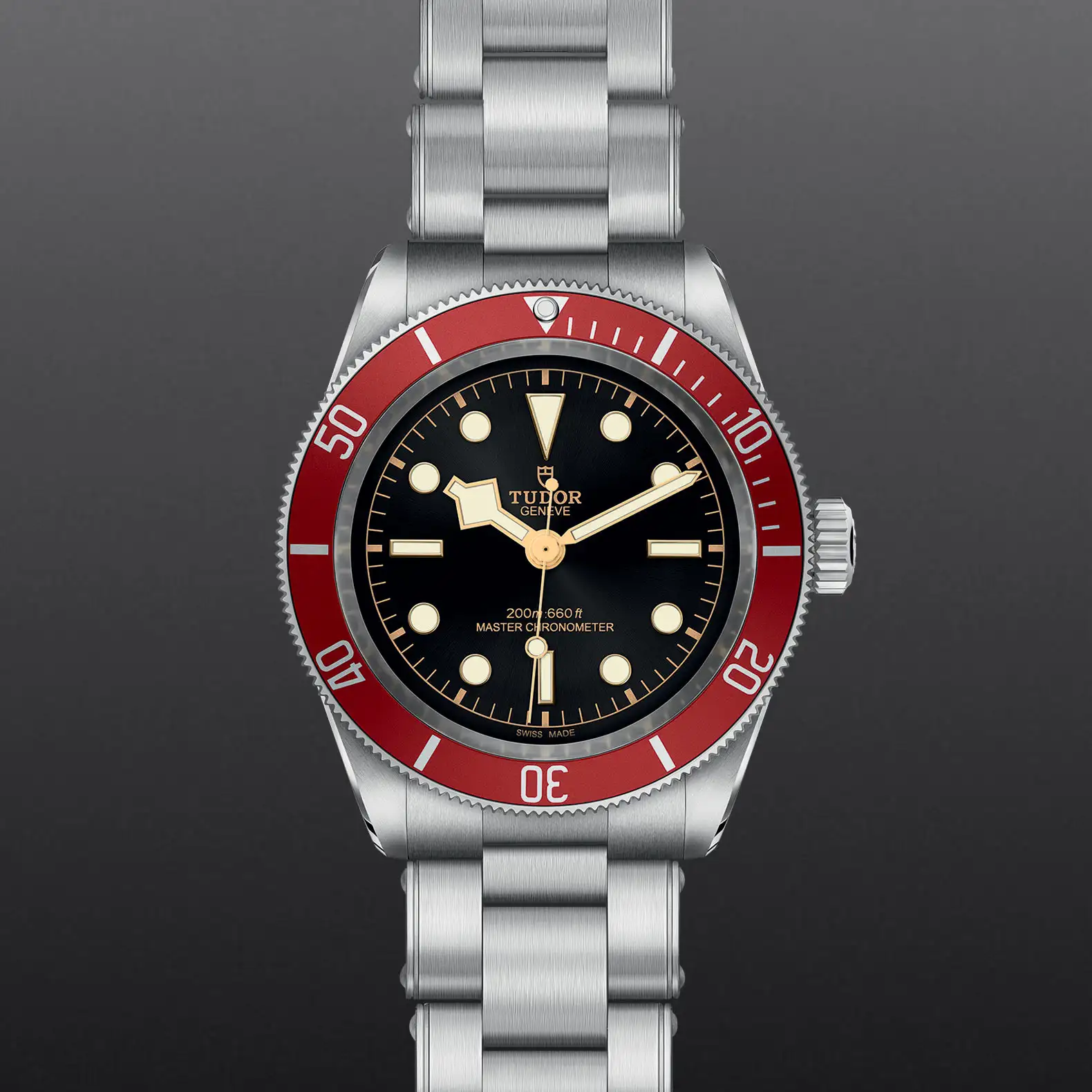 不锈钢三链节表带,经磨光及磨砂处理,配帝舵表“T-fit”带扣