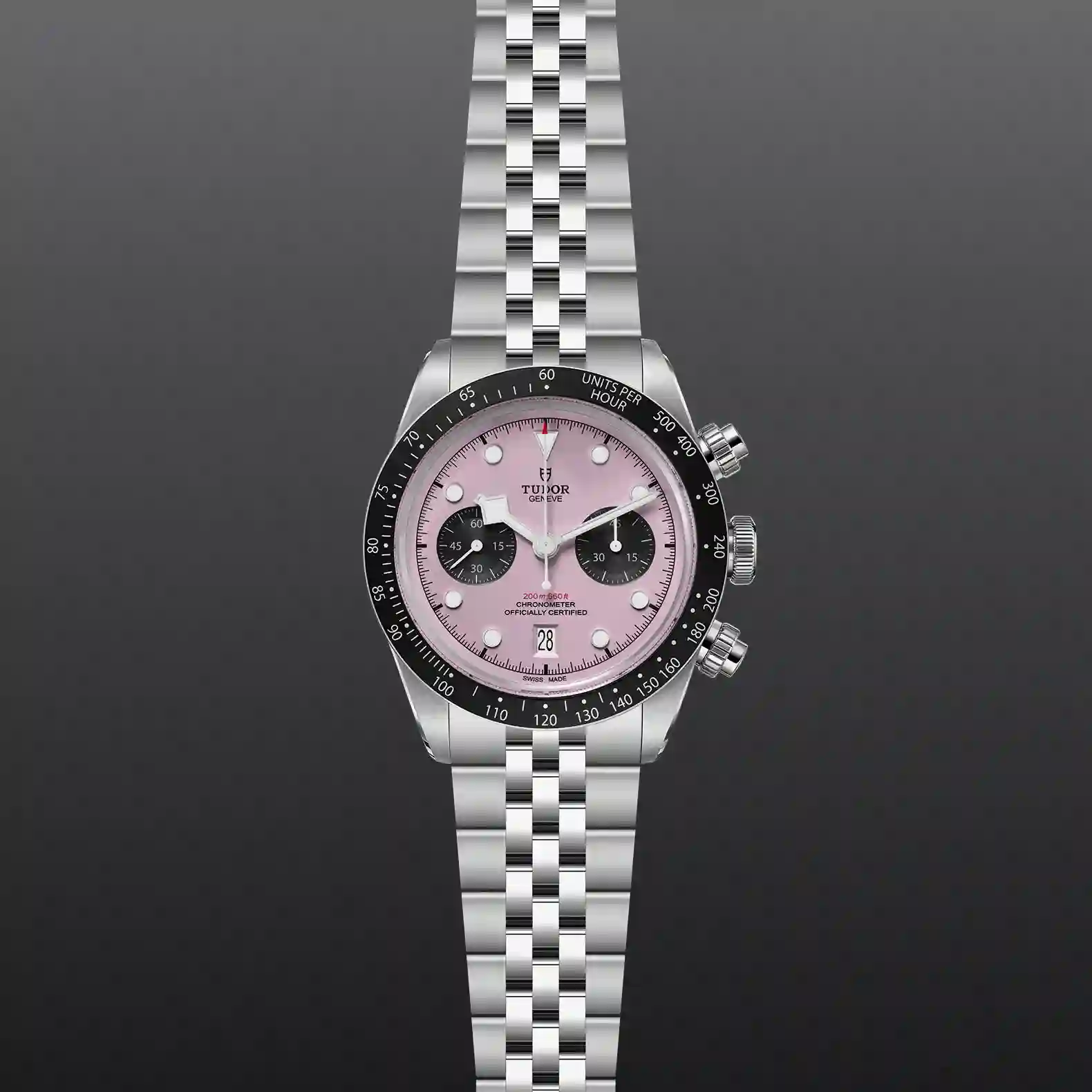 混合型碧湾计时型将碧湾系列代表的潜水表传统与赛车计时表的精髓相结合。钢表壳保留了碧湾系列的显著特征,其按钮的设计灵感则源于第一代帝舵计时腕表。固定外圈设有测速计刻度,使这款运动型计时腕表的外观更趋完备。