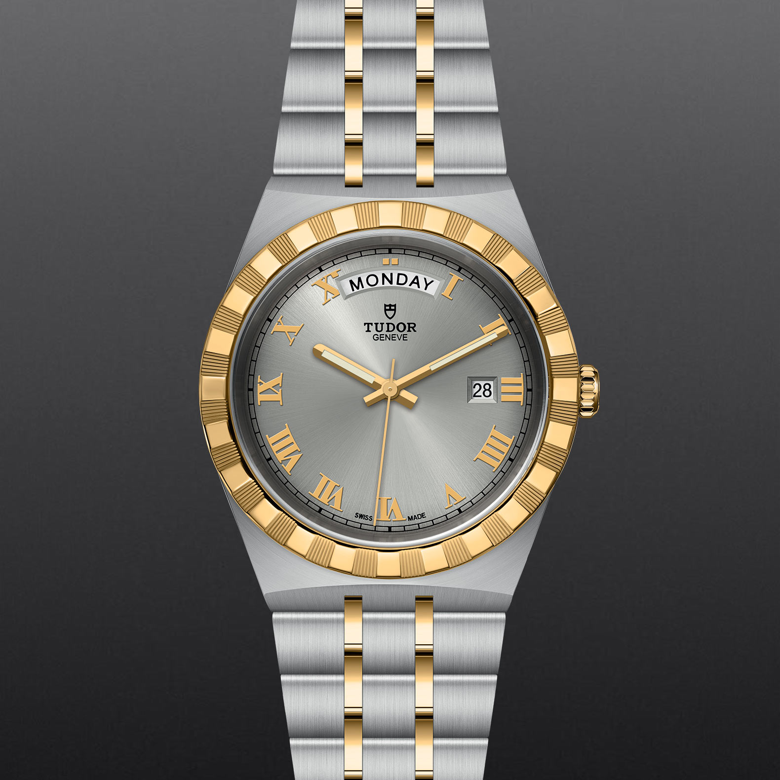 帝舵表最初于1950年代使用「Royal」这名称,以突显其腕表的出众质量。而TUDOR Royal系列即此历史传承的延续。此系列腕表兼具运动气息与时尚风范,配备与表壳连成一体的表带及坑纹外圈,自动上链,价格相宜又不失优越质量。其出众性能与精美风格的融合,汲取了经典腕表与运动腕表的双重特色。此系列将推出精钢款及金钢款,共有四种尺寸、九款表面可选。