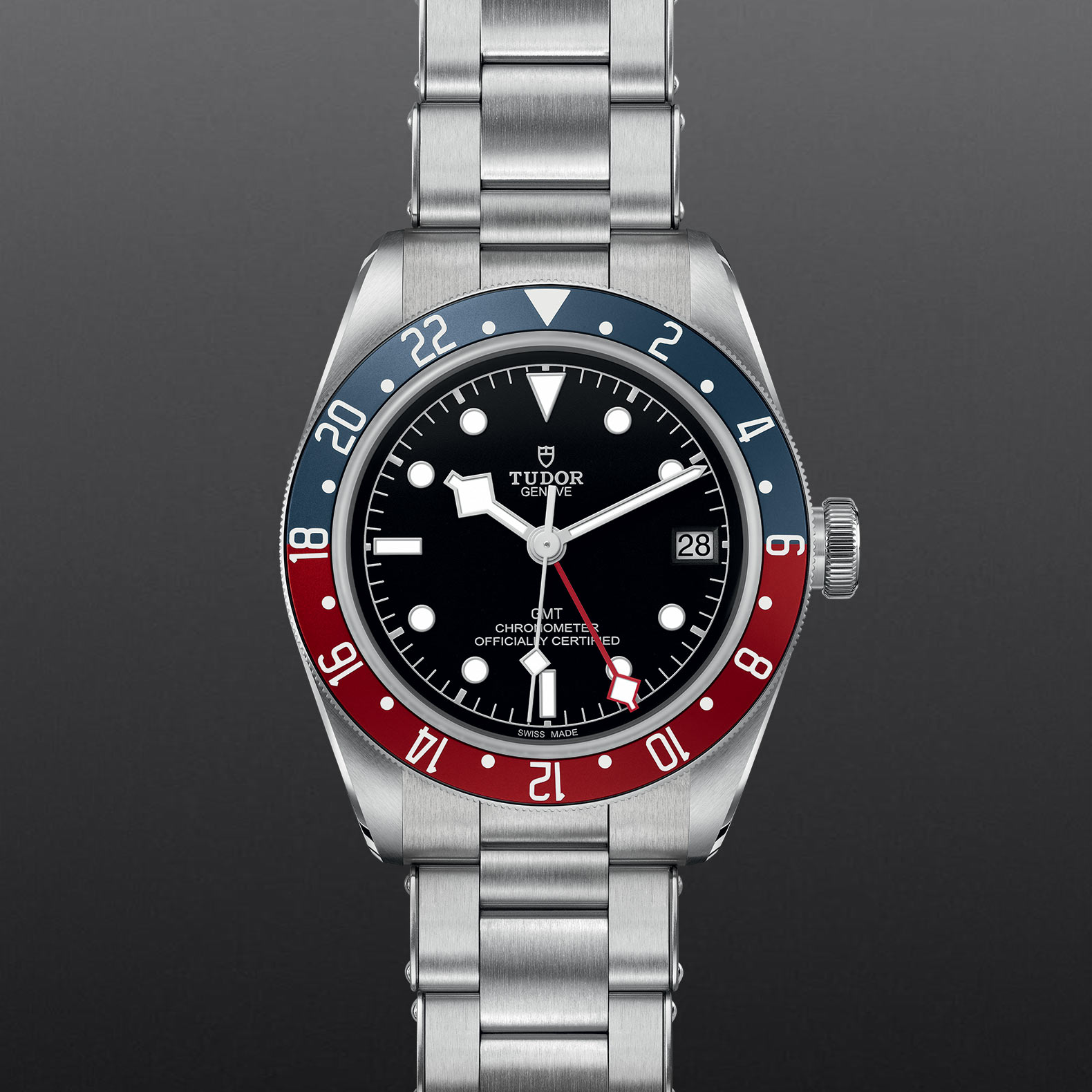 Black Bay GMT擴展Black Bay系列,引入極為實用的複雜功能──「GMT」,即多時區功能。Black Bay GMT配備搶眼的旋轉外圈,沿用Black Bay系列的深藍色和酒紅色配搭,啞面Black Bay GMT同樣向GMT這一傑出功能致敬。